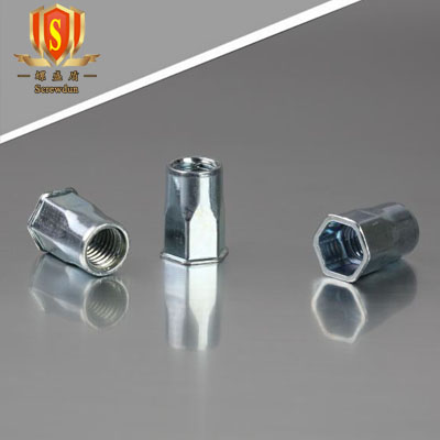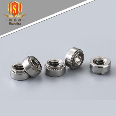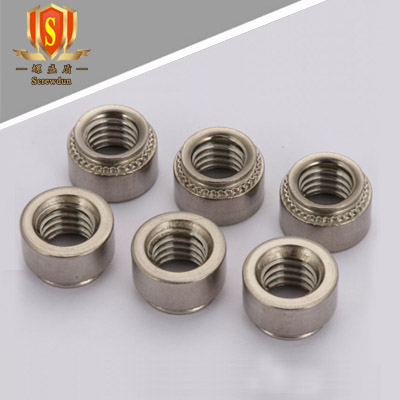 壓鉚螺母又叫鉚螺母,自扣緊螺母,是應(yīng)用于薄板或鈑金上的一種螺母,外形呈圓形,一端帶有壓花齒及導(dǎo)向槽。